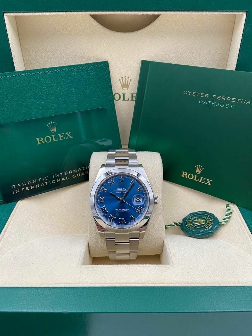 Introducing the Rolex Datejust 41 126300 (Year: 2024) – a testament to timeless design and precision. This piece features a blue dial, steel bracelet, and 41 mm steel case, making it a statement piece that effortlessly captures attention.