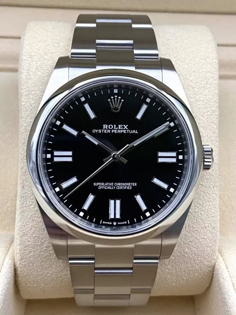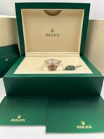 Introducing the Rolex Day-Date 128345RBR (Year: 2022) – a testament to timeless design and precision. This piece features a mother of pearl dial, rose gold bracelet, and 36 mm rose gold case, making it a statement piece that effortlessly captures attention.