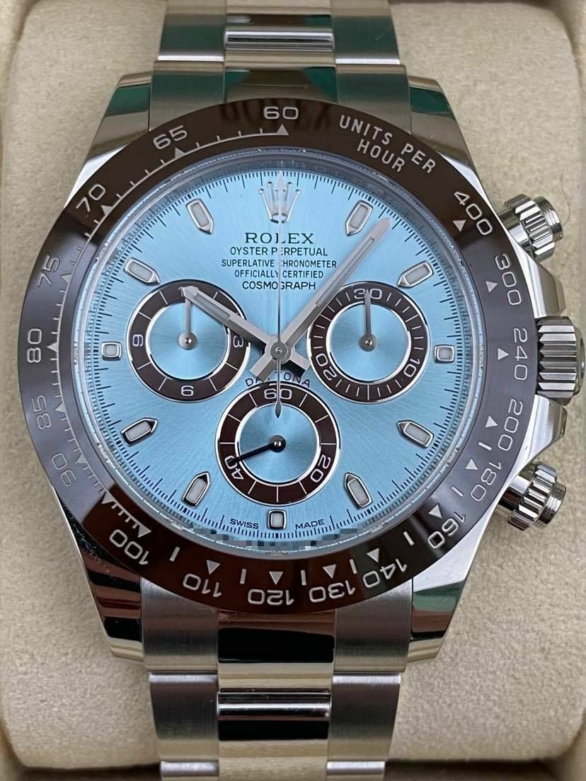 Introducing the Rolex Daytona 116506 (Year: 2020) – a testament to timeless design and precision. This piece features a blue dial, platinum bracelet, and 40 mm platinum case, making it a statement piece that effortlessly captures attention.