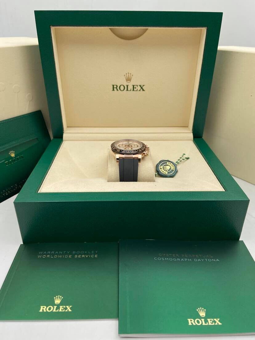 Introducing the Rolex Daytona 116515LN (Year: 2022) – a testament to timeless design and precision. This piece features a ivory dial, rubber bracelet, and 40 mm rose gold case, making it a statement piece that effortlessly captures attention.
