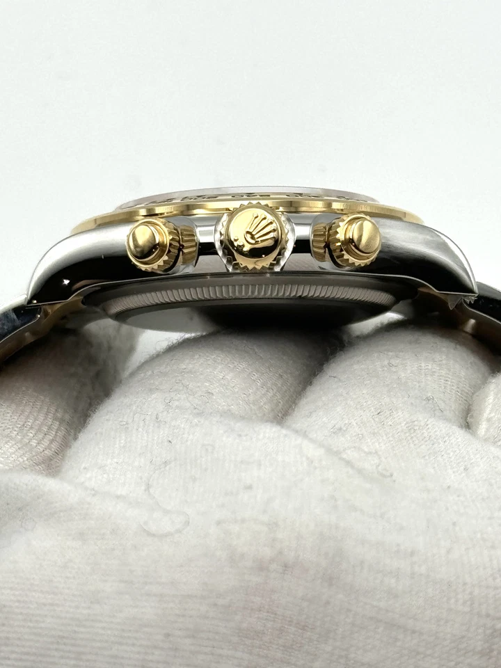 There are some stickers on the case back and clasp that were not removed from the watch at the time of the original purchase from the Rolex Authorized Dealer. Because there are no stickers on the bracelet or on the sides of the case, there will be some faint hairline handling marks present, particularly on the high polish parts of the watch. Nevertheless, the watch is unworn.