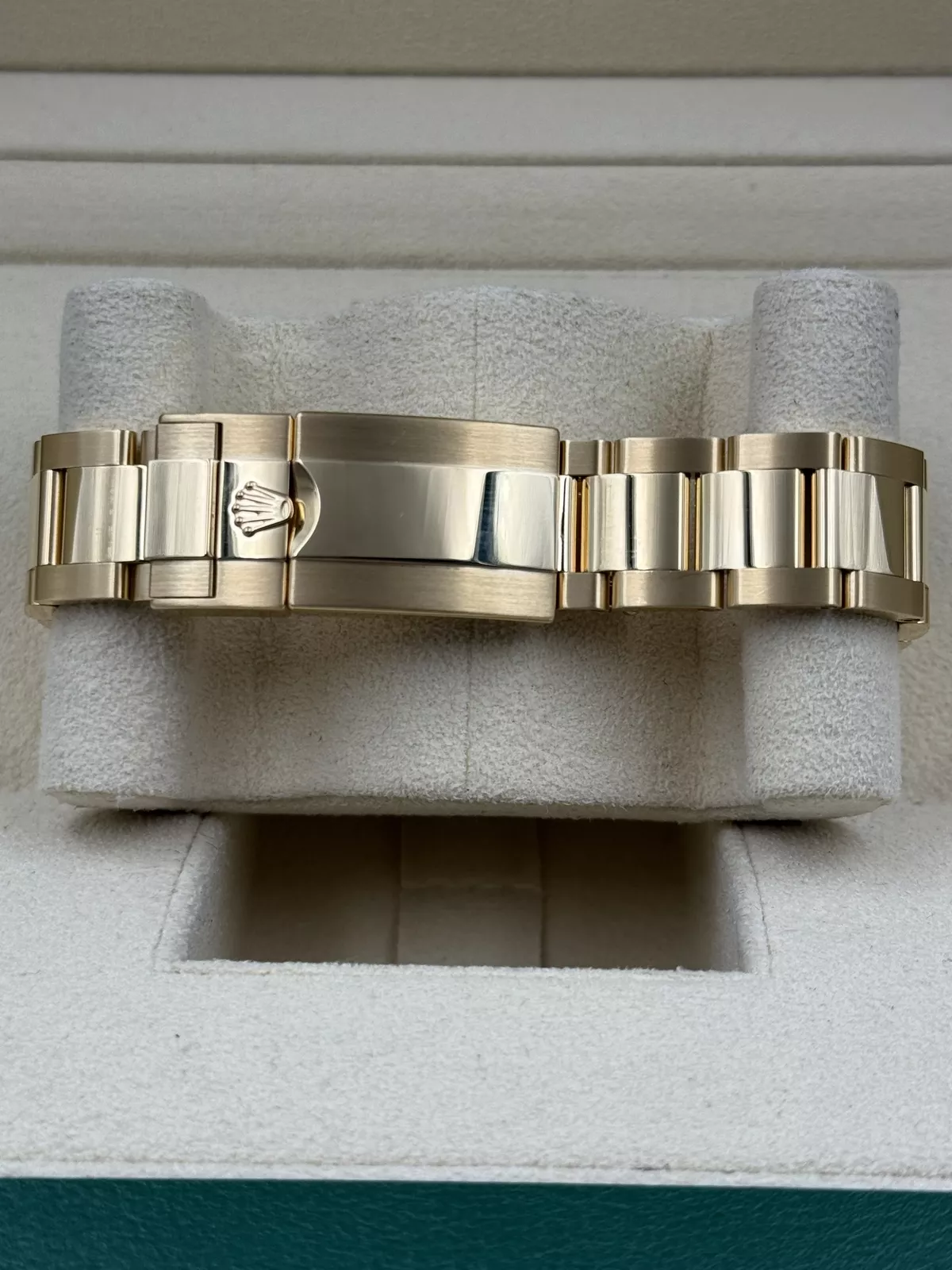 The watch is completed with an 18k yellow gold Oyster bracelet, featuring the secure Oysterlock clasp and Easylink extension for comfort and flexibility.