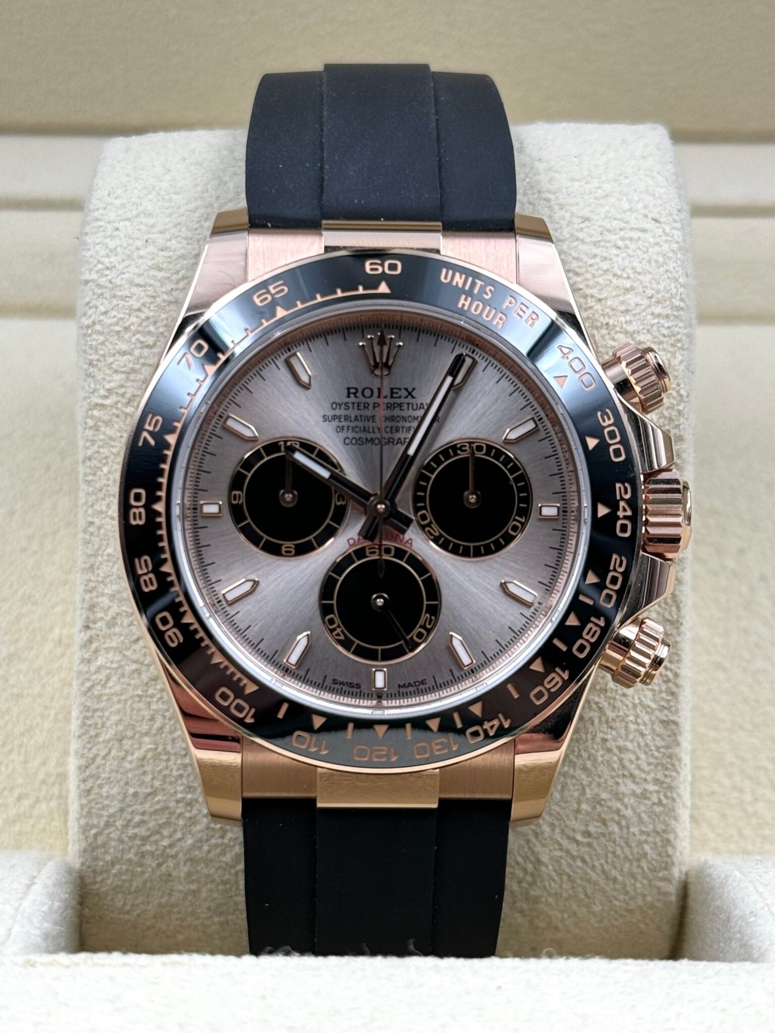 The Rolex Daytona 126515LN with a sundust dial is an exquisite chronograph that merges Rolex’s high-performance engineering with luxurious design. Crafted in 18k Everose gold, this Daytona model showcases both sophistication and functionality, making it a timeless addition to Rolex’s renowned Cosmograph Daytona collection.