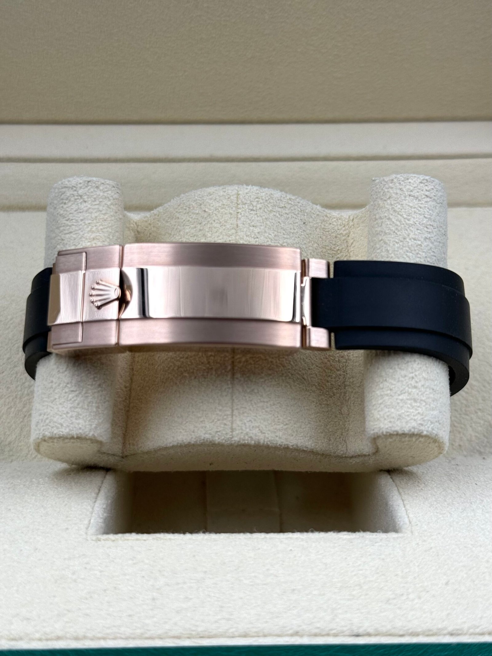 Paired with a luxurious sundust Oysterflex bracelet, the Daytona 126515LN combines the look of a rubber strap with the resilience of metal, thanks to its flexible titanium-nickel alloy interior. The Everose gold Oysterlock clasp and Glidelock extension system provide a secure fit and added comfort.