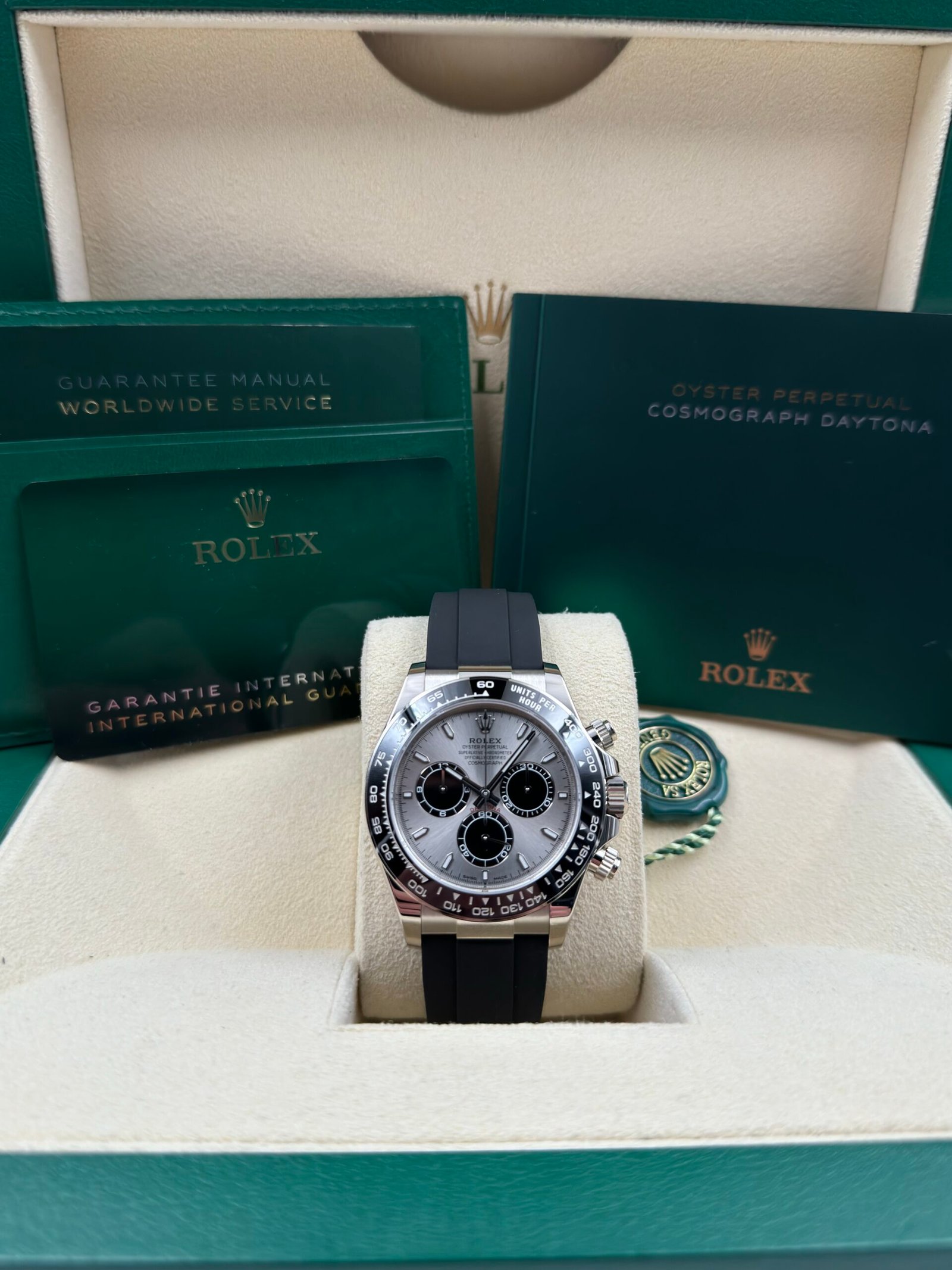 The Rolex Cosmograph Daytona Ref. 126519LN with a silver dial is a testament to Rolex’s mastery of blending luxury and performance. This timepiece combines the iconic Daytona design with a modern and elegant aesthetic.