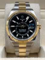 Introducing the Rolex Sky-Dweller 336933 (Year: 2023) – a testament to timeless design and precision. This piece features a black dial, two tone yellow gold/stainless steel bracelet, and 42 mm steel case, making it a statement piece that effortlessly captures attention.