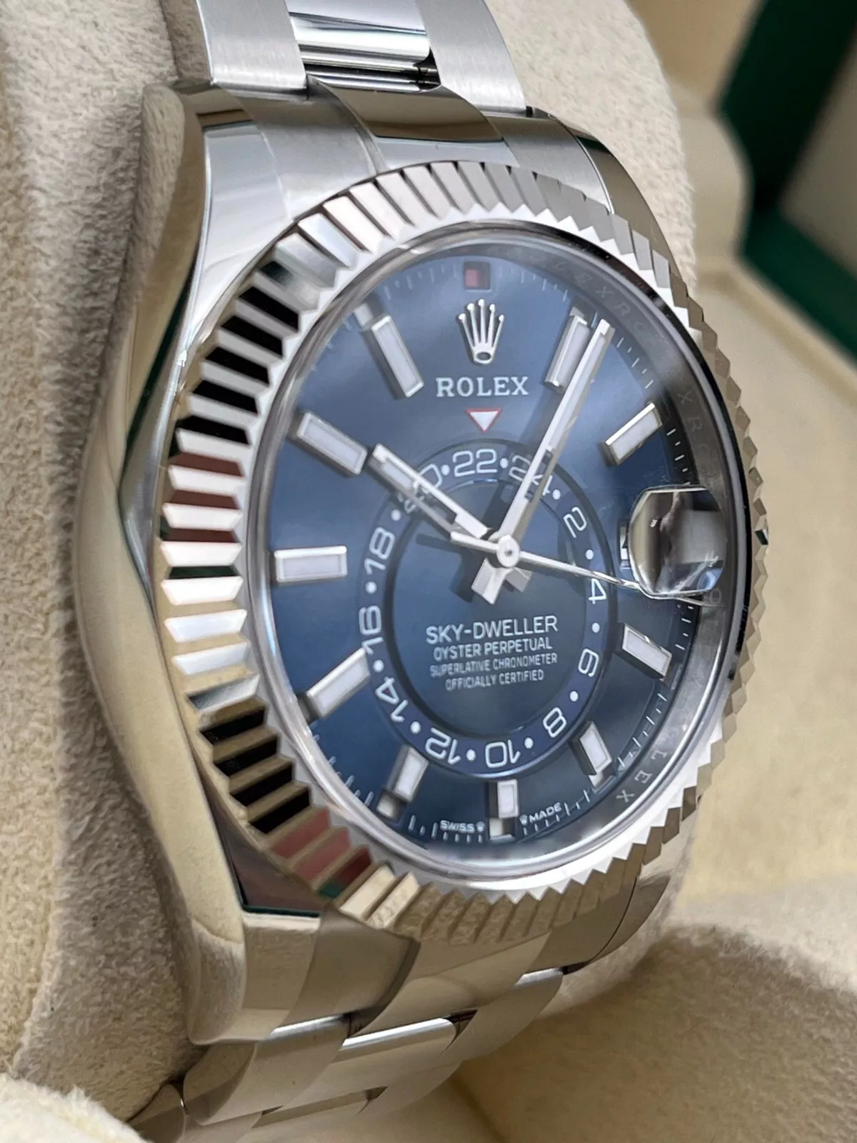 Introducing the Rolex Sky-Dweller 336934 (Year: 2024) – a testament to timeless design and precision. This piece features a blue dial, stainless steel bracelet, and 42 mm steel case, making it a statement piece that effortlessly captures attention.