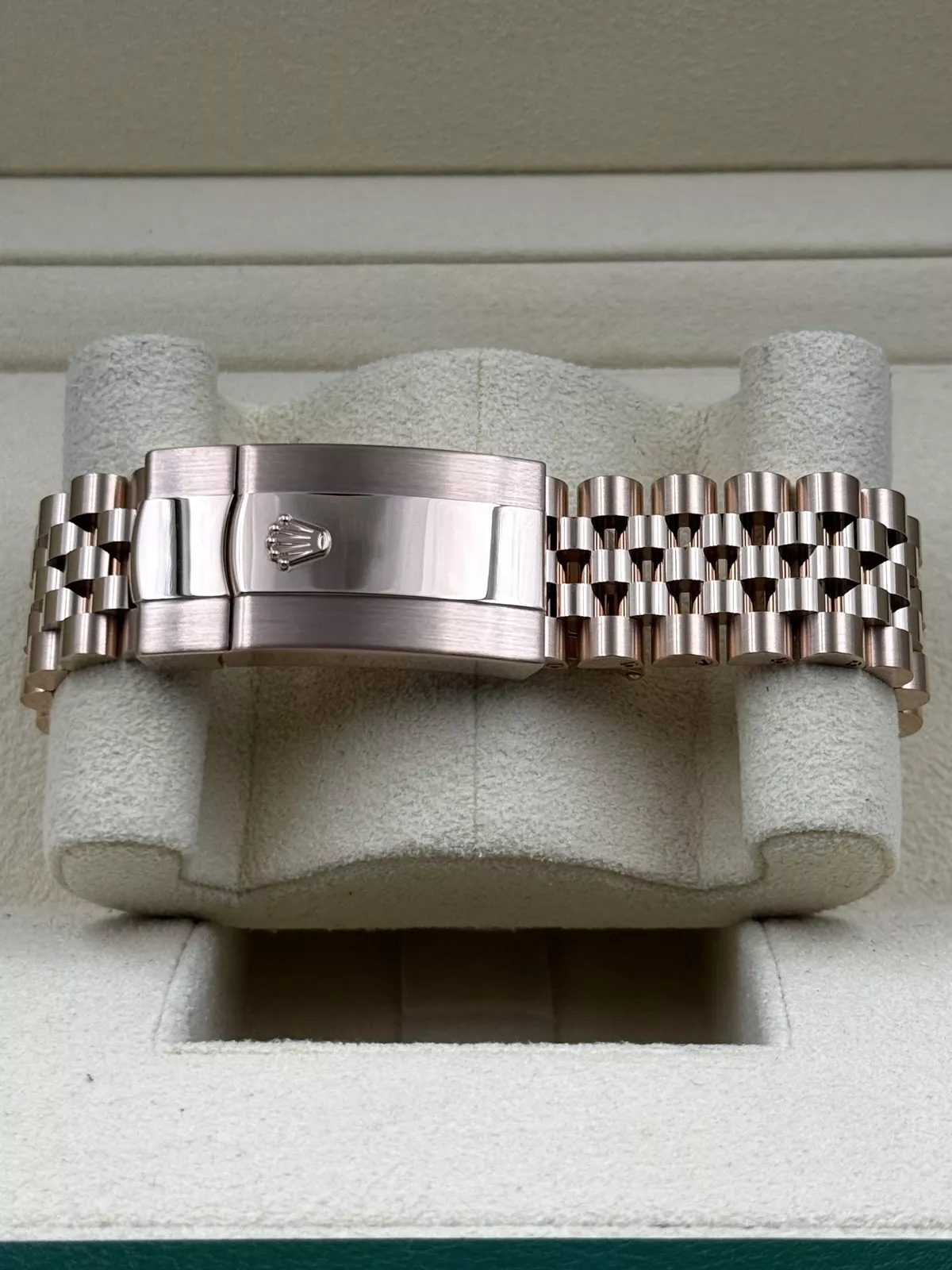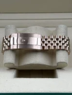 The timepiece is completed with a Jubilee bracelet in Everose gold, featuring Rolex’s signature five-link design for ultimate comfort and style. The concealed Crownclasp provides a seamless look while ensuring a secure and adjustable fit.