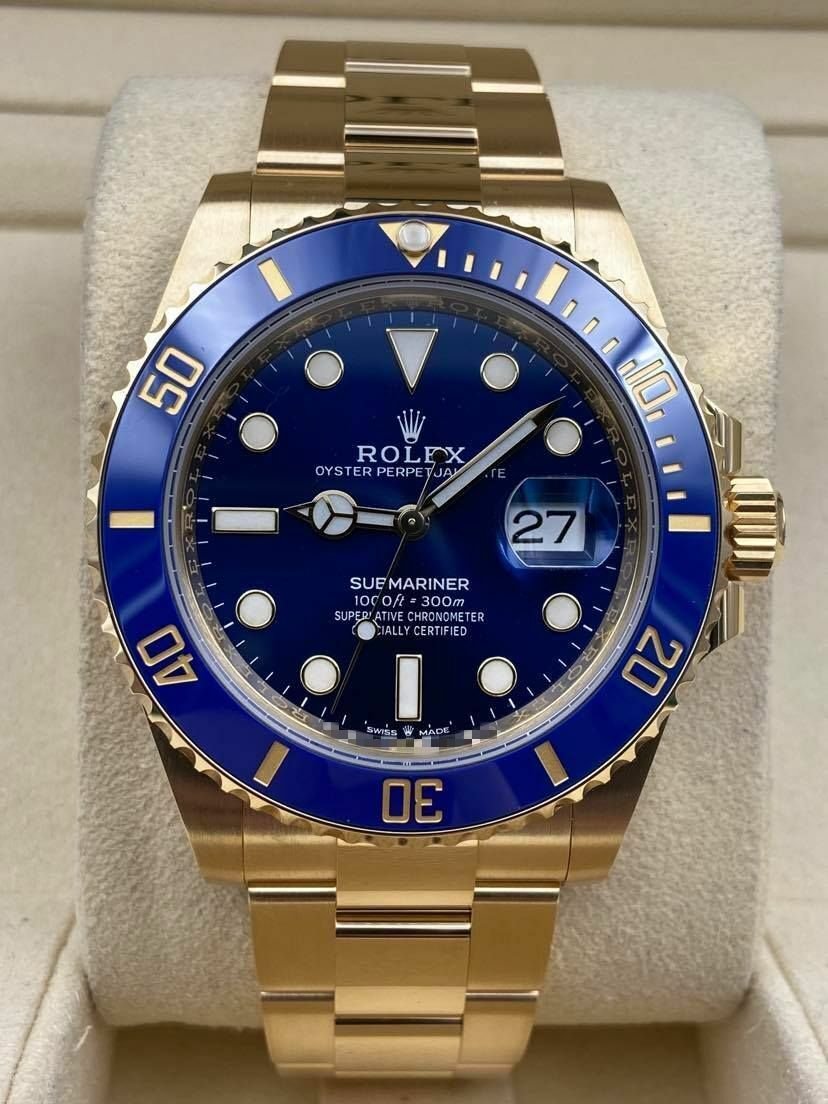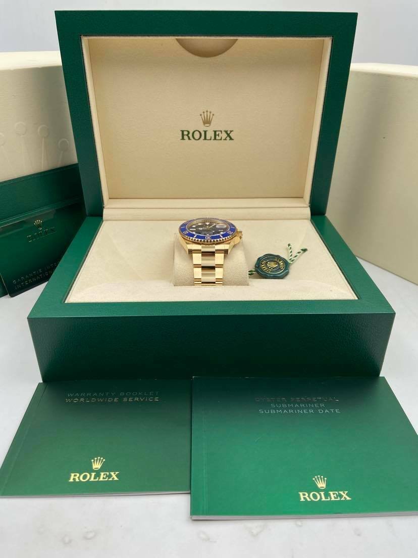 Introducing the Rolex Submariner Date 126618LB (Year: 2023) – a testament to timeless design and precision. This piece features a blue dial, yellow gold bracelet, and 41 mm yellow gold case, making it a statement piece that effortlessly captures attention.